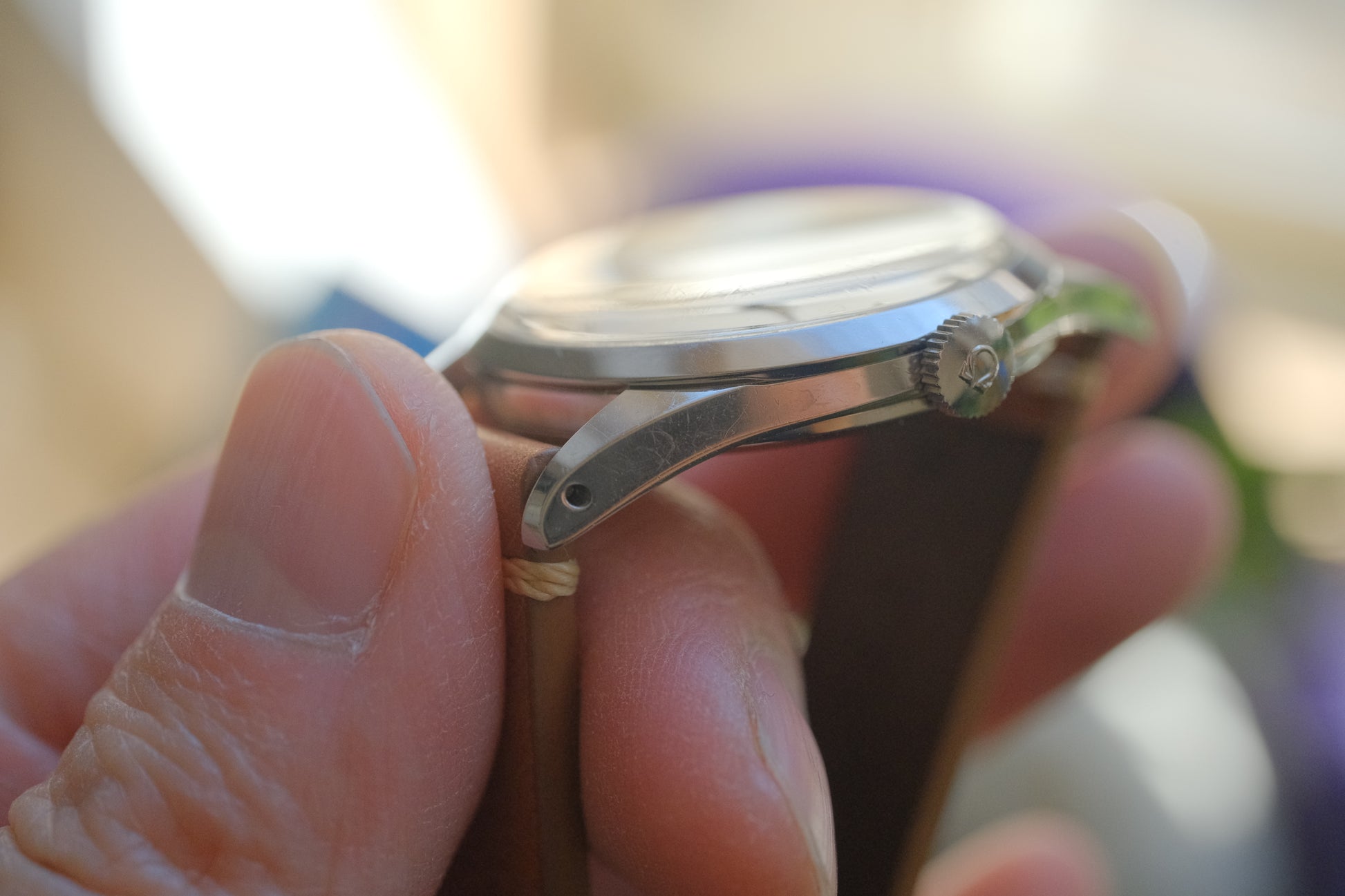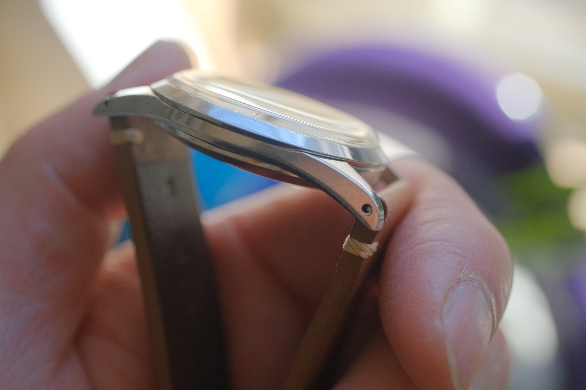 外周の9時〜10時位置にやや大きめのシミが見られますが、ヴィンテージらしい雰囲気を残したダイアルです。