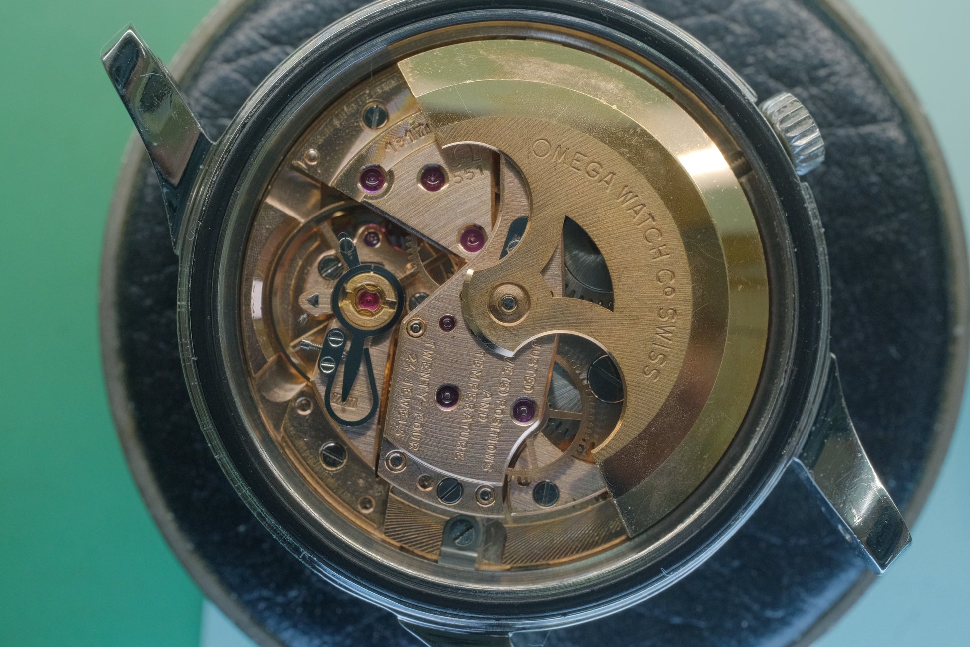 風防も中央にΩマークが入っているオリジナルです。研磨を実施しており視認性も問題はありません。